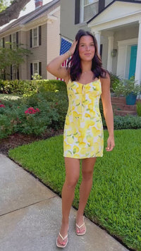 Fresh, flirty, and full of summer vibes—this Lemon Print Tie Front Mini Dress is a citrusy dream! Featuring a playful yellow lemon pattern on a soft white backdrop, it’s designed with a flattering tie-front bust, adjustable spaghetti straps, and a subtle cutout detail for a hint of allure. The fitted silhouette highlights your curves, while the hidden zipper at the back ensures a seamless fit. Perfect for brunch dates, vacations, or sunny strolls—just add sandals and a straw hat for the ultimate warm-weather look.