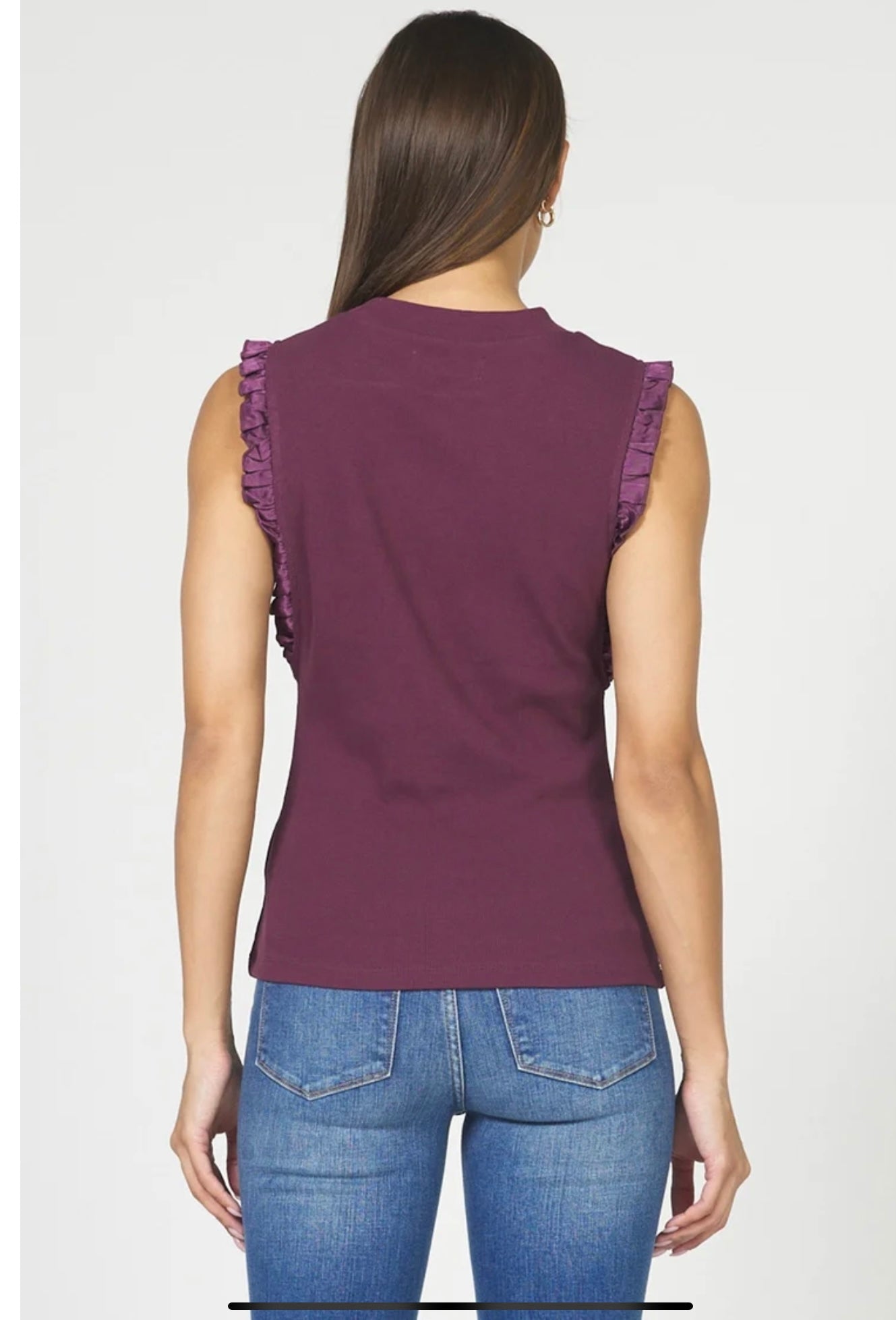 Hightlight your wardrobe with the Bridgette suede ruffle top.
