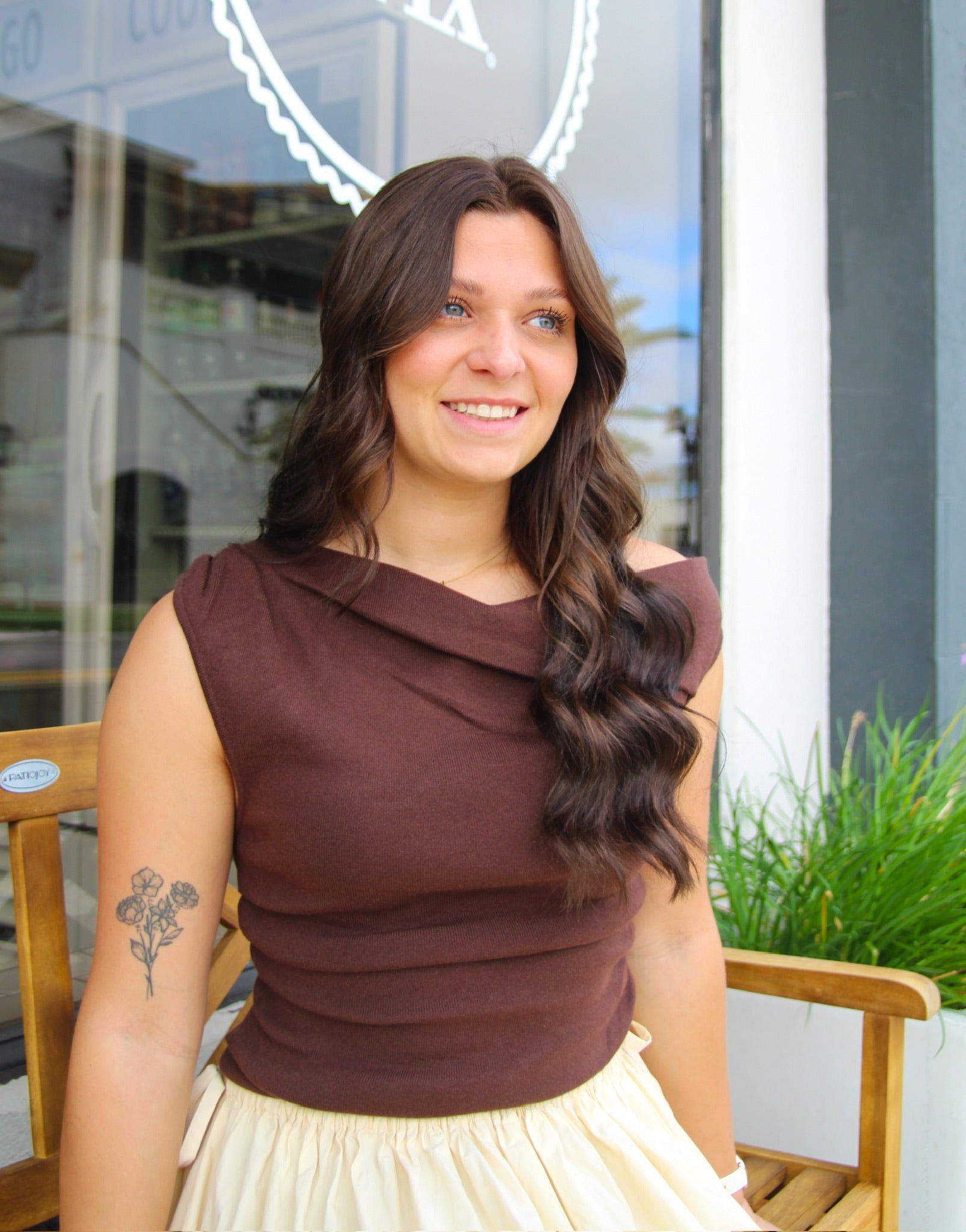 A timeless staple with an elevated twist. This sleeveless draped-neck top features soft, lightweight fabric that creates a flattering, effortless silhouette. The subtle neckline adds a touch of sophistication, making it perfect for layering under blazers or pairing with high-waisted bottoms.