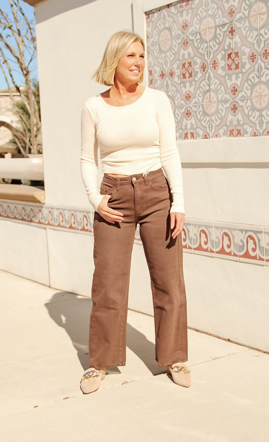 Fitted Basic long sleeve off the shoulder top in creamy yellow