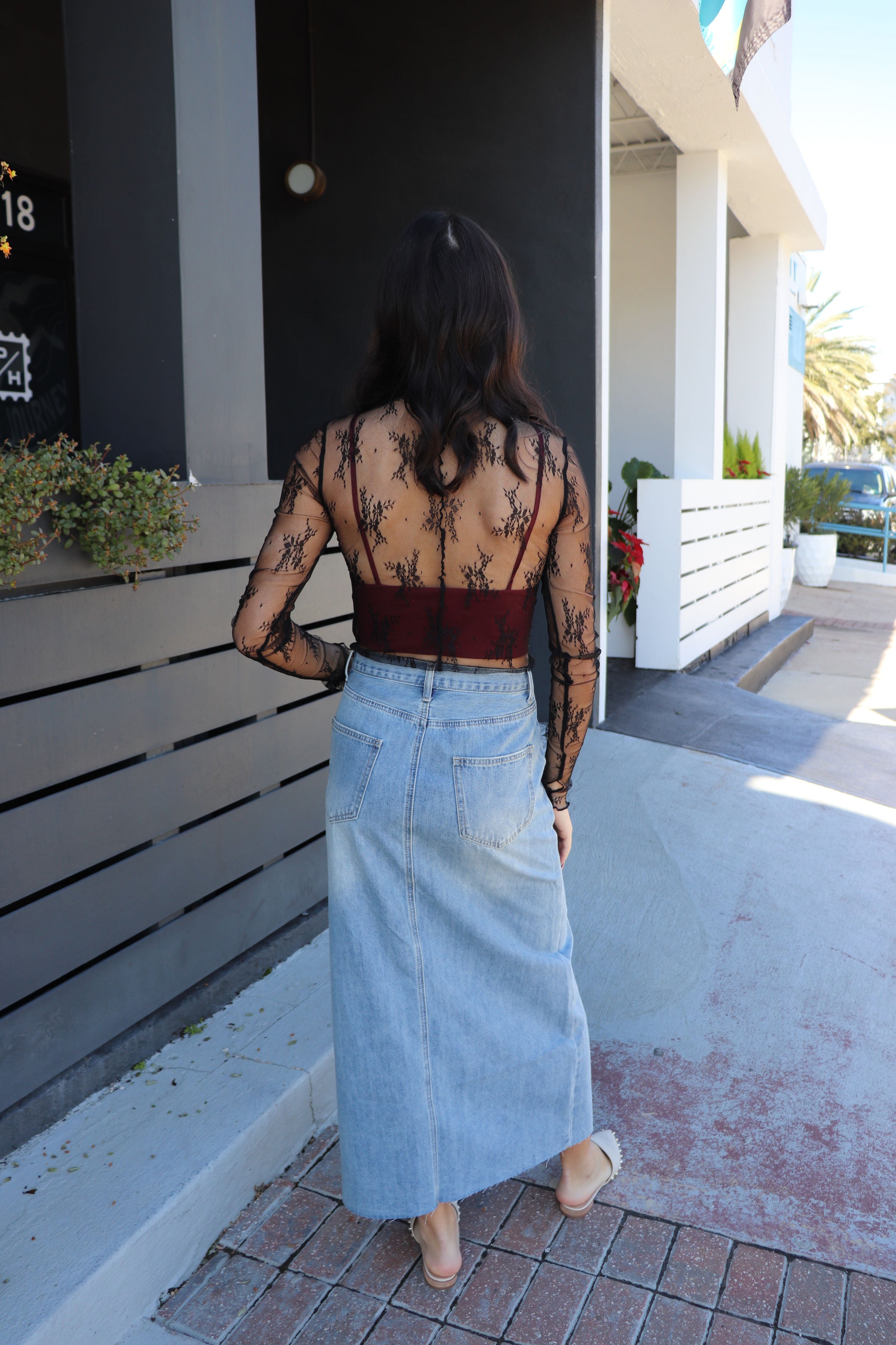 The beautiful black Aubrey sheer lace top is made to perfection under or over any of your favorite pieces! With its delicate details and mock neck, you are sure to look stylish and contemporary!